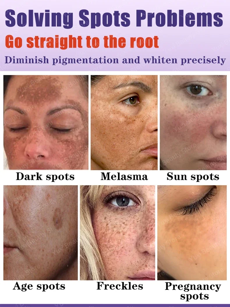 【Symptoms】Freckles,chloasma,dark spots,hyperpigmentation, agespots,acne spots, sun spots